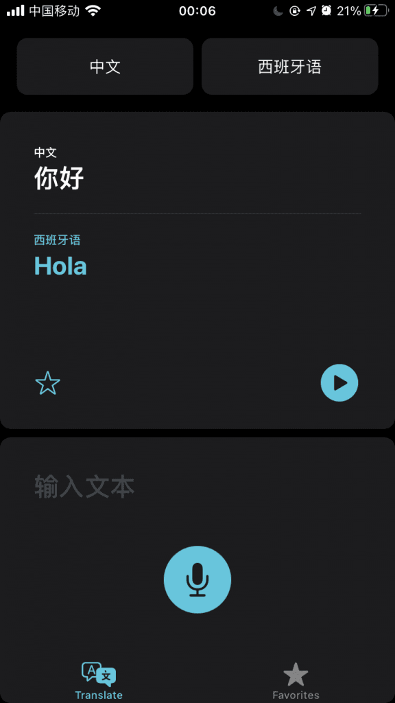 新增的翻译支持语音和文字,支持大多数国家的翻译需求,体验和Google翻译一样,不过缺少类似相机实时翻译功能。